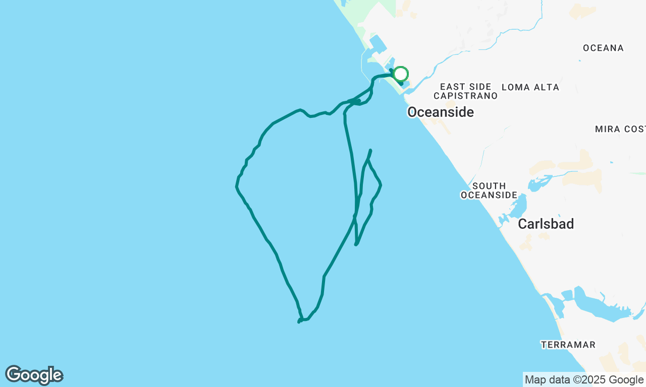 Sea state was calm. Wind was light. Very dark after the moon went down. Lots of sea lions swimming around. A few dolphins. Low oil pressure light forced us to sail back to our slip.